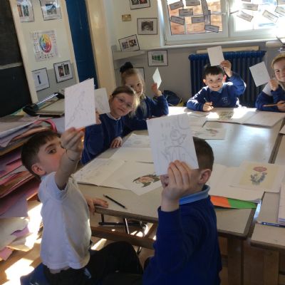 We took part in an art workshop with artist Jane. She taught us all about printmaking with polystyrene plates and ink.