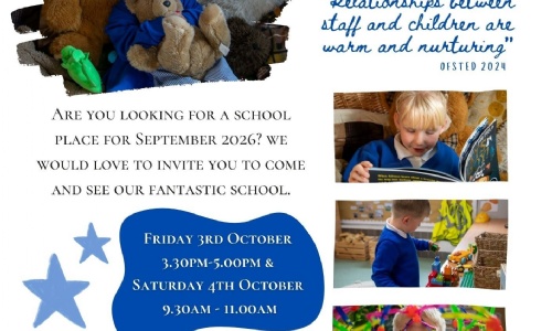 Come and visit our foundation stage learning environments on Friday 3rd October 3.30-5.00pm and Saturday 4th October 9.30-11.00am